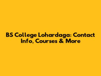 BS College Lohardaga: Contact Info, Courses & More