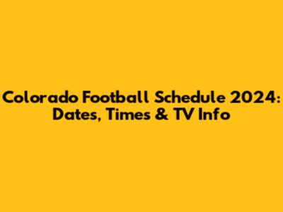 Colorado Football Schedule 2024: Dates, Times & TV Info